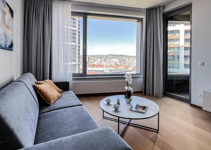 City View Apartment In Sky Park By Zaha Hadid Bratysława o powierzchni 55 m² cieszy się pierwszorzędną lokalizacją w centrum Bratysławy około 25 min spacerem od popularnego miejsca kultu, takiego jak Kościół franciszkański Zwiastowania Pańskiego w Bratysławie. Wi-Fi dostępne dla gości biznesowych lub rekreacyjnych.